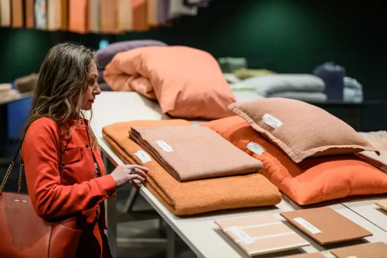 Kuoseista Heimtextil-messuilla näkyi koko kirjo. Riippuen omista mieltymyksistä, sieltä saattoi nostaa esiin mitä tahansa; oli kukkia, ruutua ja raitaa. Myös tekoälyllä tehtyjä kuoseja löytyi kattavasti.