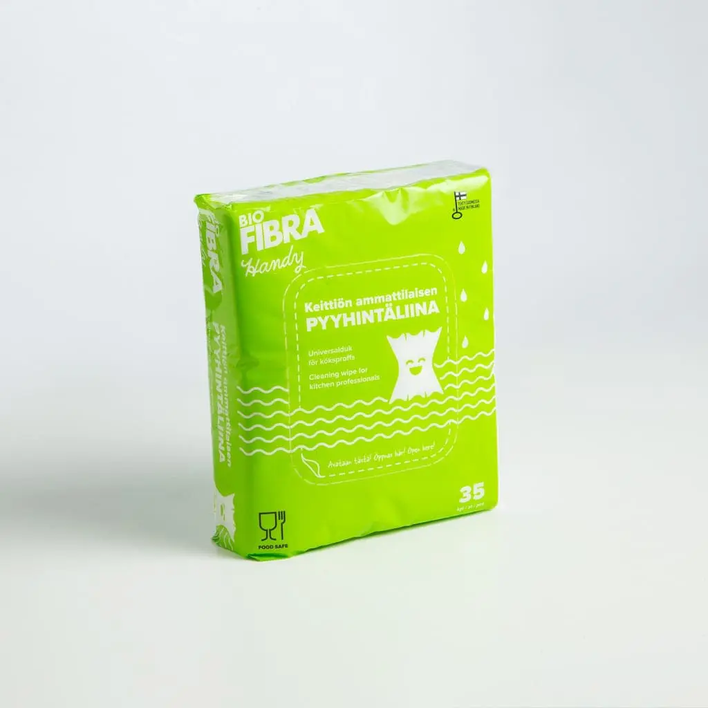 Bio Fibra® Handy on ympäristöä arvostavan ammattilaisen valinta. Tutkitusti elintarviketurvalliset Bio Fibra® liinat ovat 100% viskoosia ja täysin biohajoavia. Niillä huolehdit helposti keittiön siisteydestä ja luonnon hyvinvoinnista samalla pyyhkäisyllä.
