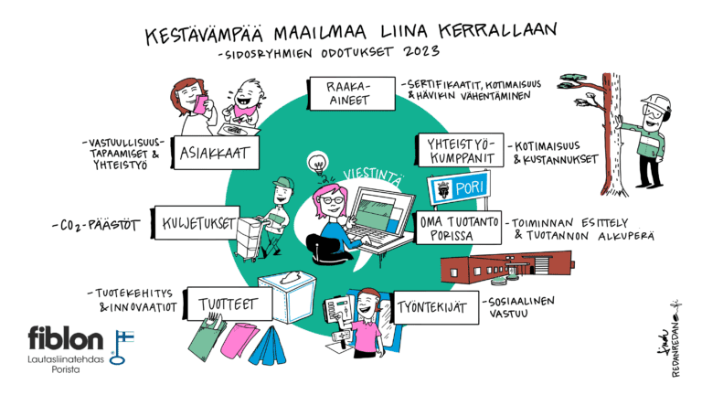 Maaliskuussa 2023 asiakkaiden keskuudessa toteutettu sidosryhmäkartoitus on jatkumoa Fiblonin pitkäjänteiselle vastuullisuustyölle. Ensimmäisen vastuullisuusraportin Fiblon julkaisi jo vuosilta 2009–2010.